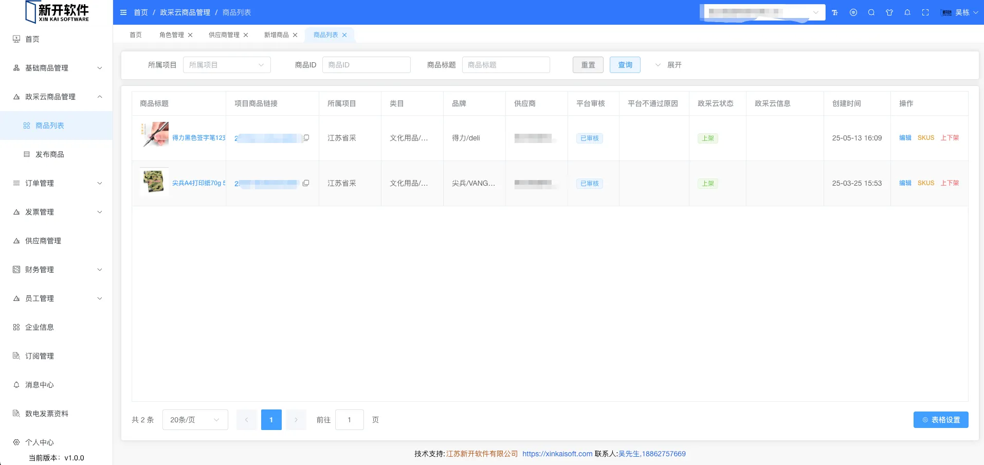 政采云商品管理
